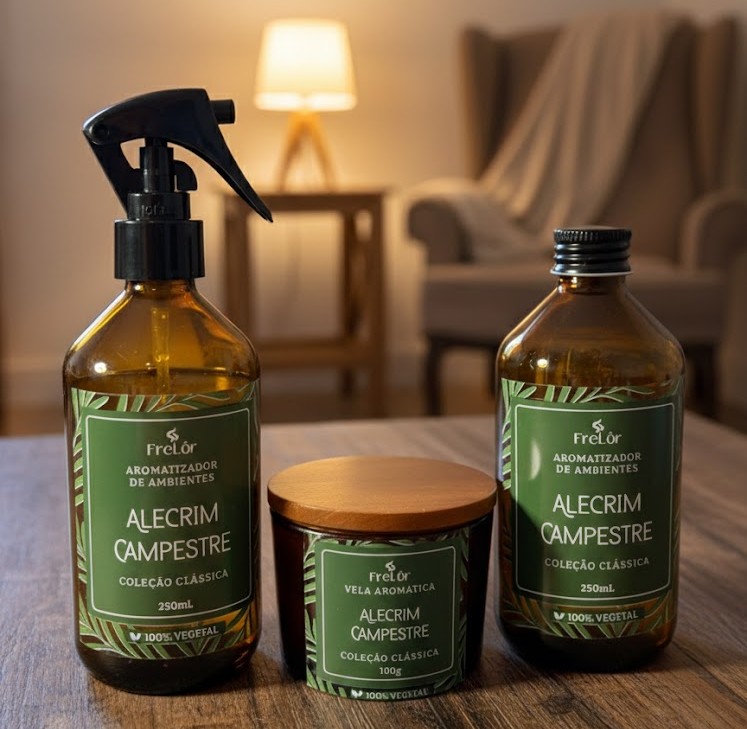 Inspirado na leveza dos campos abertos e na vitalidade do alecrim, o Alecrim Campestre é uma fragrância aromática fresca que transmite sensação imediata de limpeza, energia e equilíbrio.