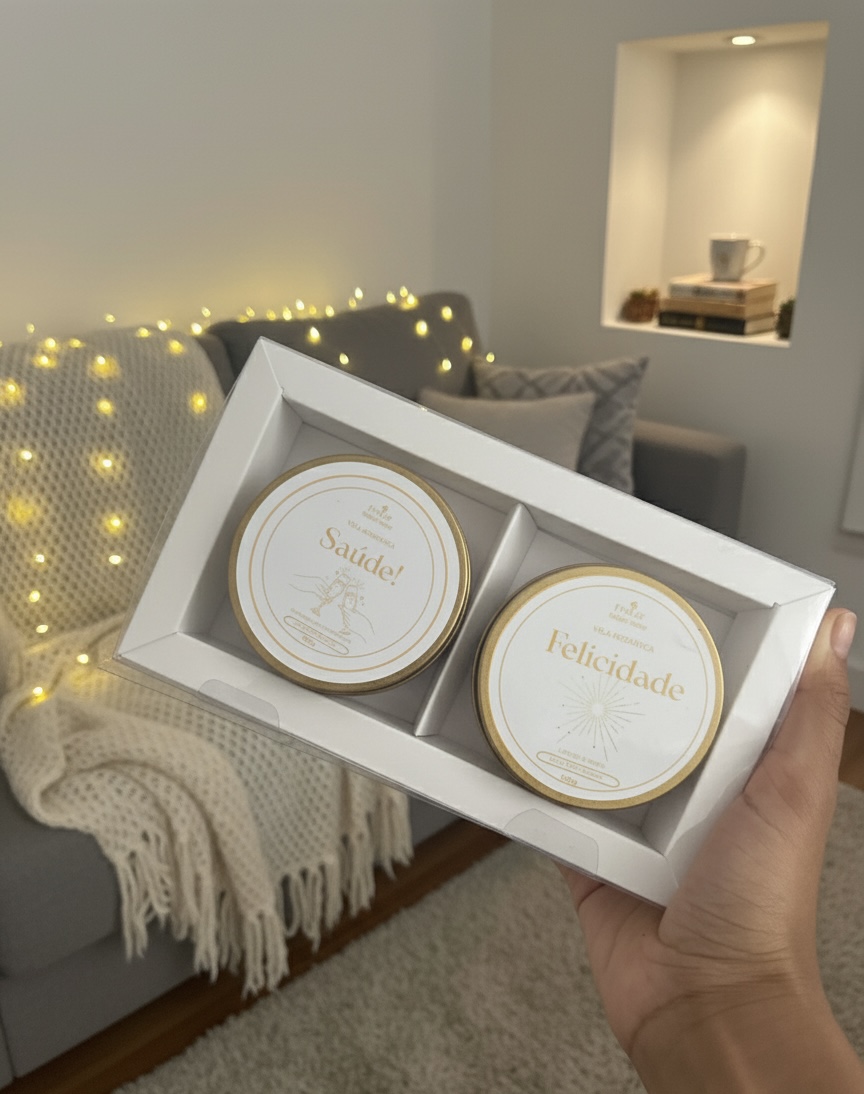 Kit contém duas velas aromáticas em dois aromas: